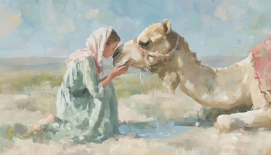 Mas Rebeca vai. Ela reconhece a mão de Deus em tudo o que aconteceu. Quando finalmente vê Isaque pela primeira vez, ela desce de seu camelo e se prepara para encontrá-lo.